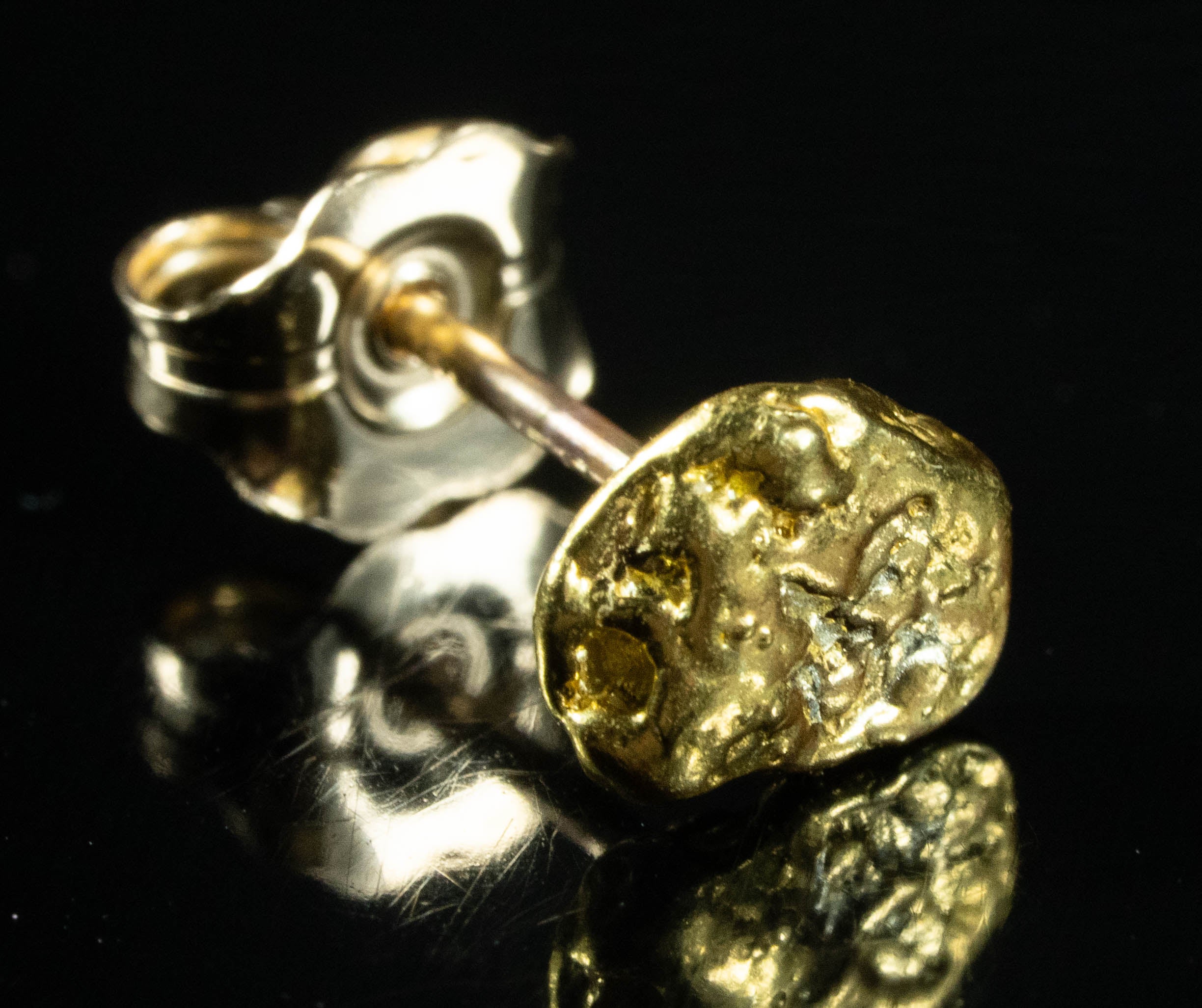 The nuggets have been matched as close as possible by the staff of Orocal to give you the best available gold nugget earrings possible. The weight includes all backs and post. *I describe it as Alaskan Yukon BC nugget because if was found in Atlin, BC Canada about 50 miles as the crow flies from Skagway Alaska where the miners of the 1898 Klondike gold rush traveled through to reach the gold fields. The nuggets assay from 82-86% pure, 20-21KT. No authentic nuggets is 24kt as natural one contain other minerals.