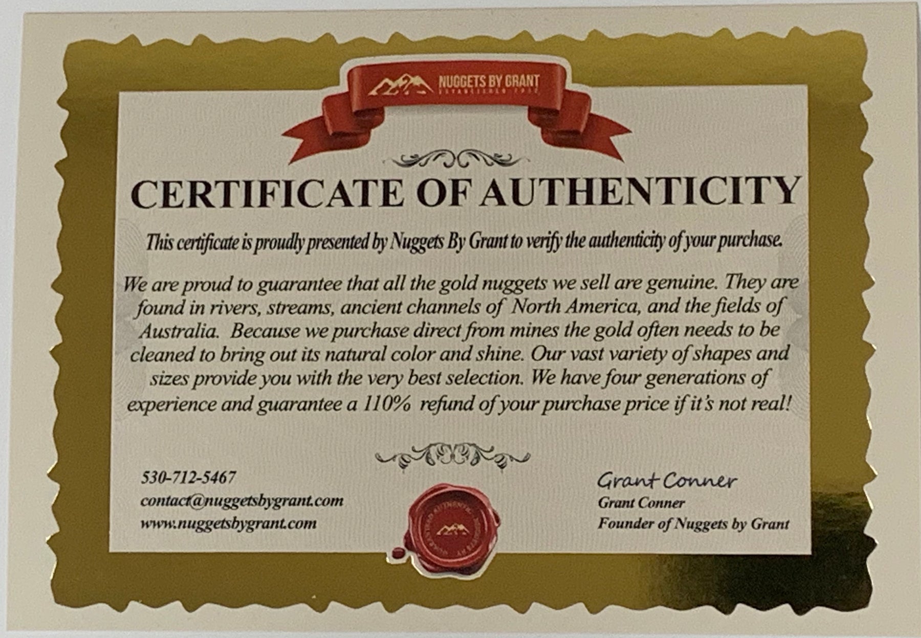 So If you're looking for a specific size I am sure to have it in the quality, value, and selection you desire. When you buy from me you will be guaranteed your nugget is genuine and not a man-made imitation with a certificate of authenticity "In your shipment, you will be given a WARRANTY CARD offering 110% of your money back guaranteed if it isn't authentic.